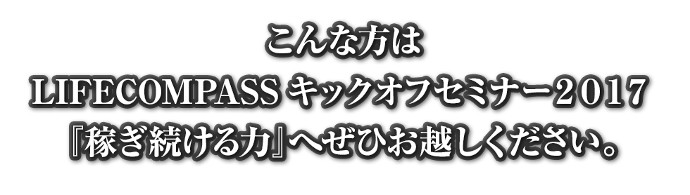 2017年の、そしてあなたの人生のキックオフとなるセミナーです。