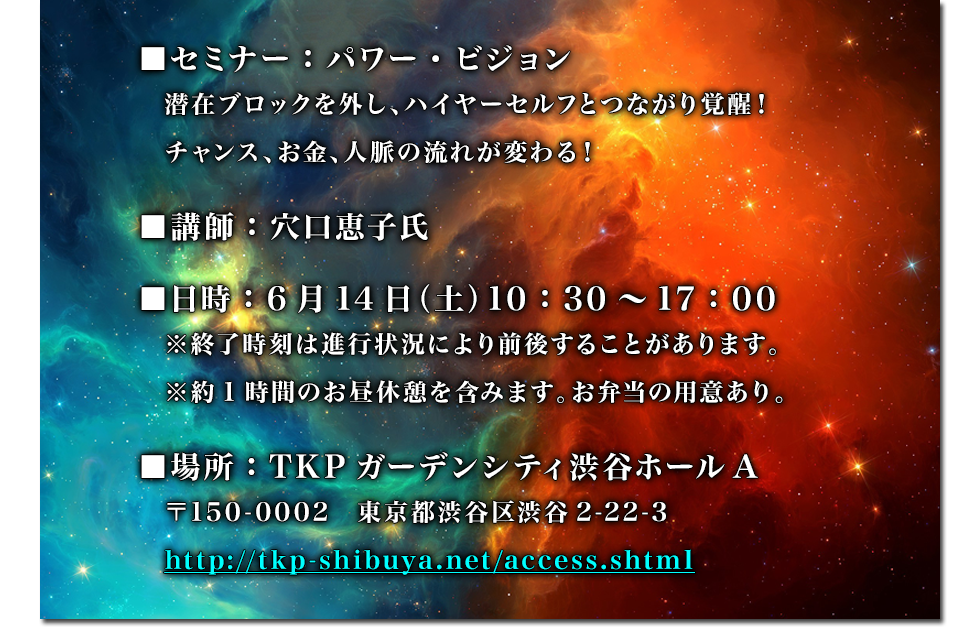 人生を変えるきっかけを得られる大変貴重なセミナーです。
