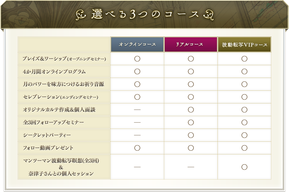 3つのコースを再度確認させていただきます。