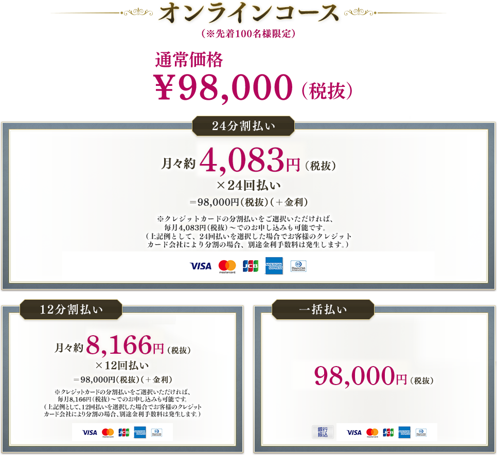 お申込み完了後のコース変更は承りかねます。ご希望のコース選択時、ご注意ください。