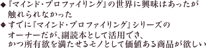 膨大な情報量の「マインド・プロファイリング」シリーズの内容を