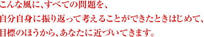 昨今、30代以上の人々の間で自己啓発に関する本やセミナーが大流行のようですが、このプログラムはその中にあっては、異色というか、オリジナル だと思います。