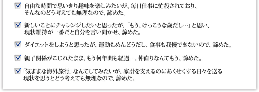 あなたにも、諦めてきた夢や願いがあるはずです。
