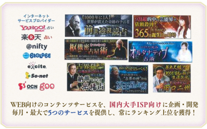 その後、インターネット会社を設立し、占いコンテンツサービスの提供・運営を行いながら、