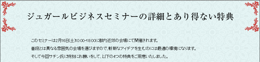 ジュガールビジネスセミナーの詳細とあり得ない特典