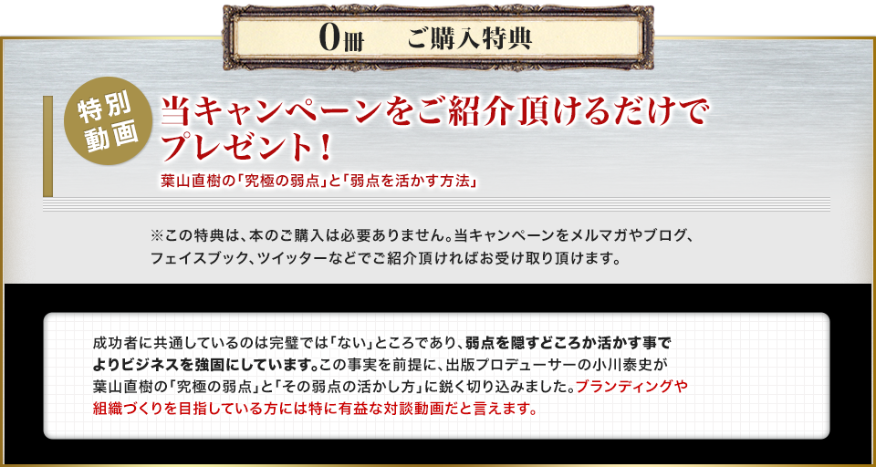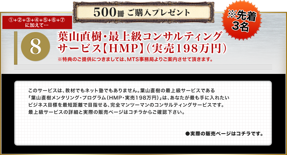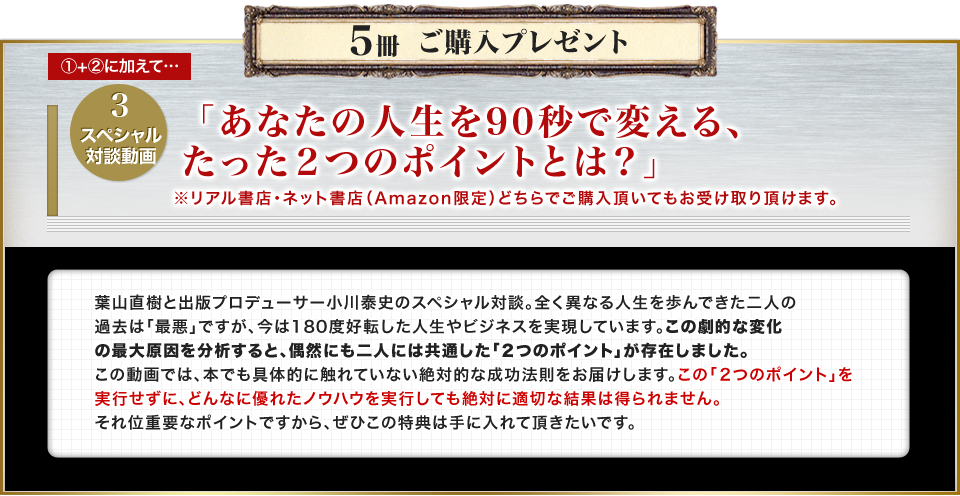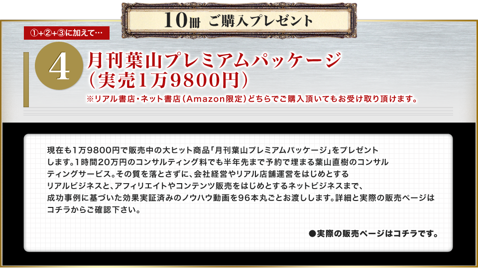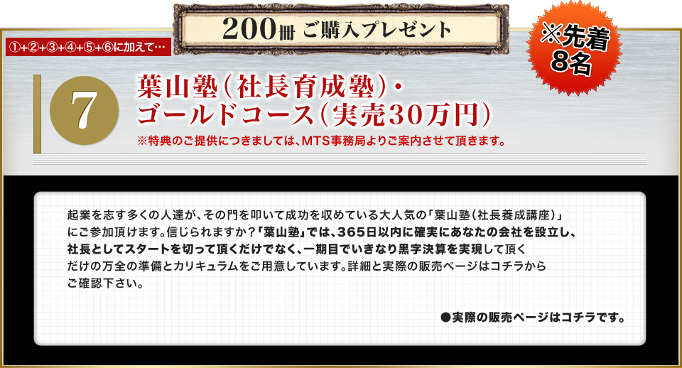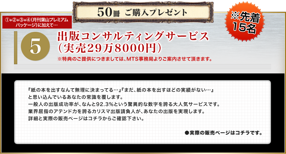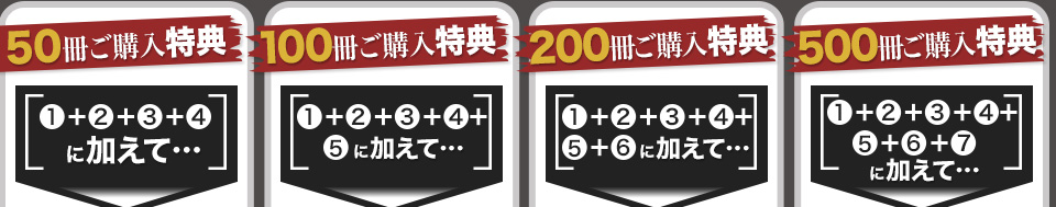 ※以下、50冊購入、100冊購入、200冊購入、500冊購入の特典は、