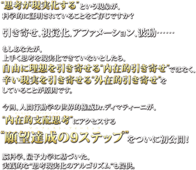 ぜひ、『引き寄せの科学』でお伝えする“真の引き寄せ”を手に入れてください。