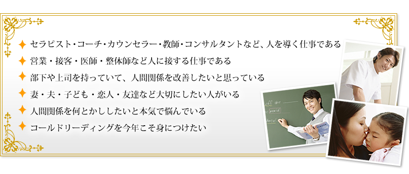教師や医師や整体の先生という、人を導く仕事に従事するプロ向けの内容で、